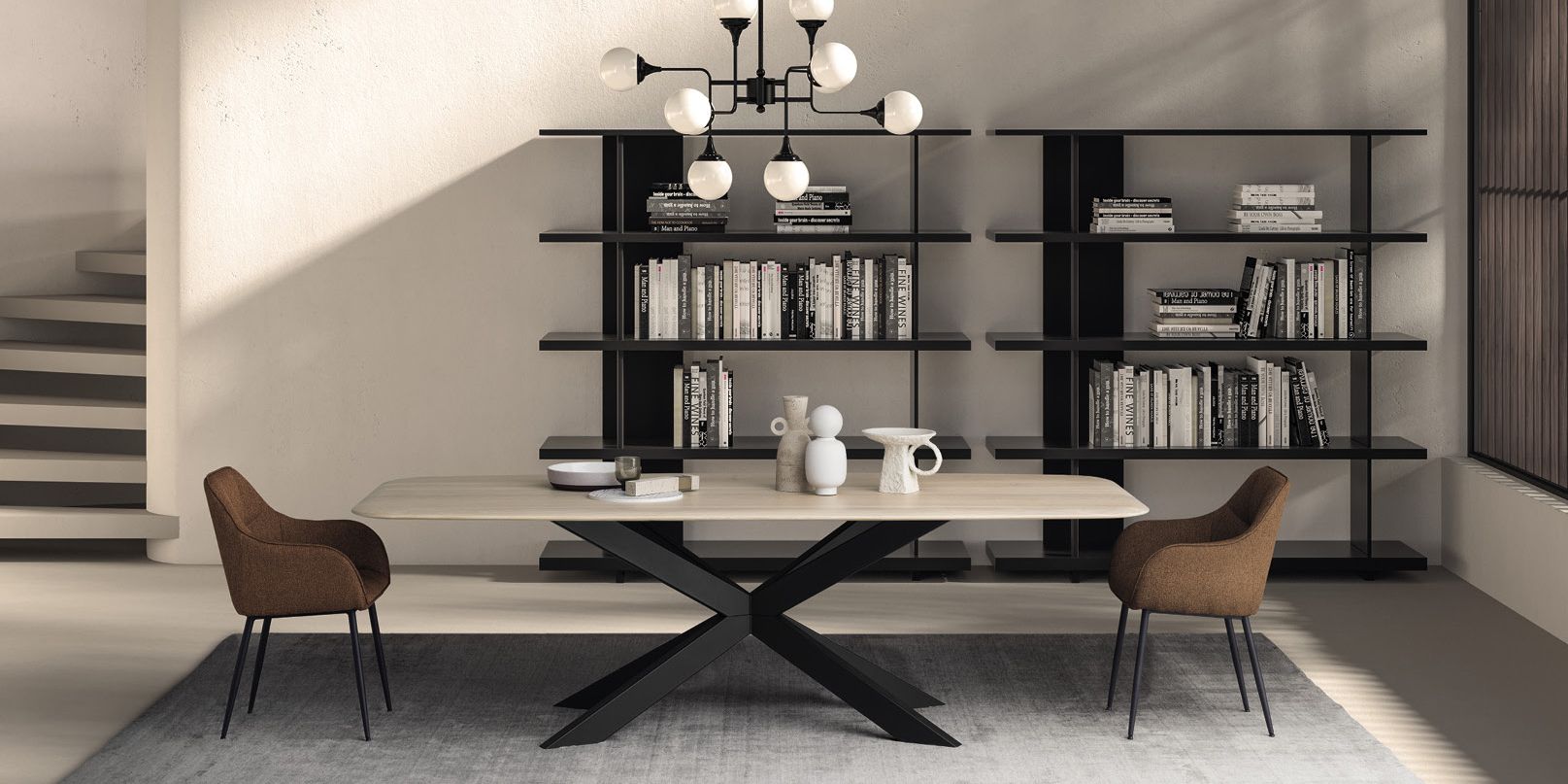 Le collezioni Devina Nais portano nel living una forte identità materica e un design ricercato. Legni masselli, lavorazioni artigianali e finiture di pregio danno vita a tavoli, madie e complementi dal carattere deciso. Ogni elemento è progettato per rendere la zona giorno unica, esprimendo personalità e gusto attraverso materiali autentici e soluzioni di grande impatto visivo.